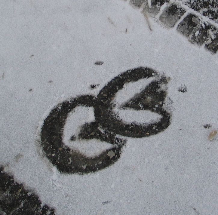Wenig Druck auf der Sohle, wie dieses Bild von einer etwa fünf Millimeter dicken Schneeschicht auf Asphalt zeigt. (© C. Götz)