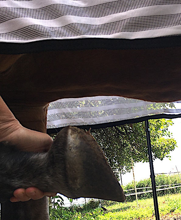 In der insektenreichen Zeit kann die Arbeit am Pferdehuf für alle Beteiligten ziemlich nervtötend sein. Noch ist es nicht wieder so weit, aber entsprechende Vorbereitung macht Sinn. Wer das lächerlich findet, hat noch nie ein Jungpferd am Start gehabt, das weder Fliegendecke, noch -spray oder Ventilator kennt.